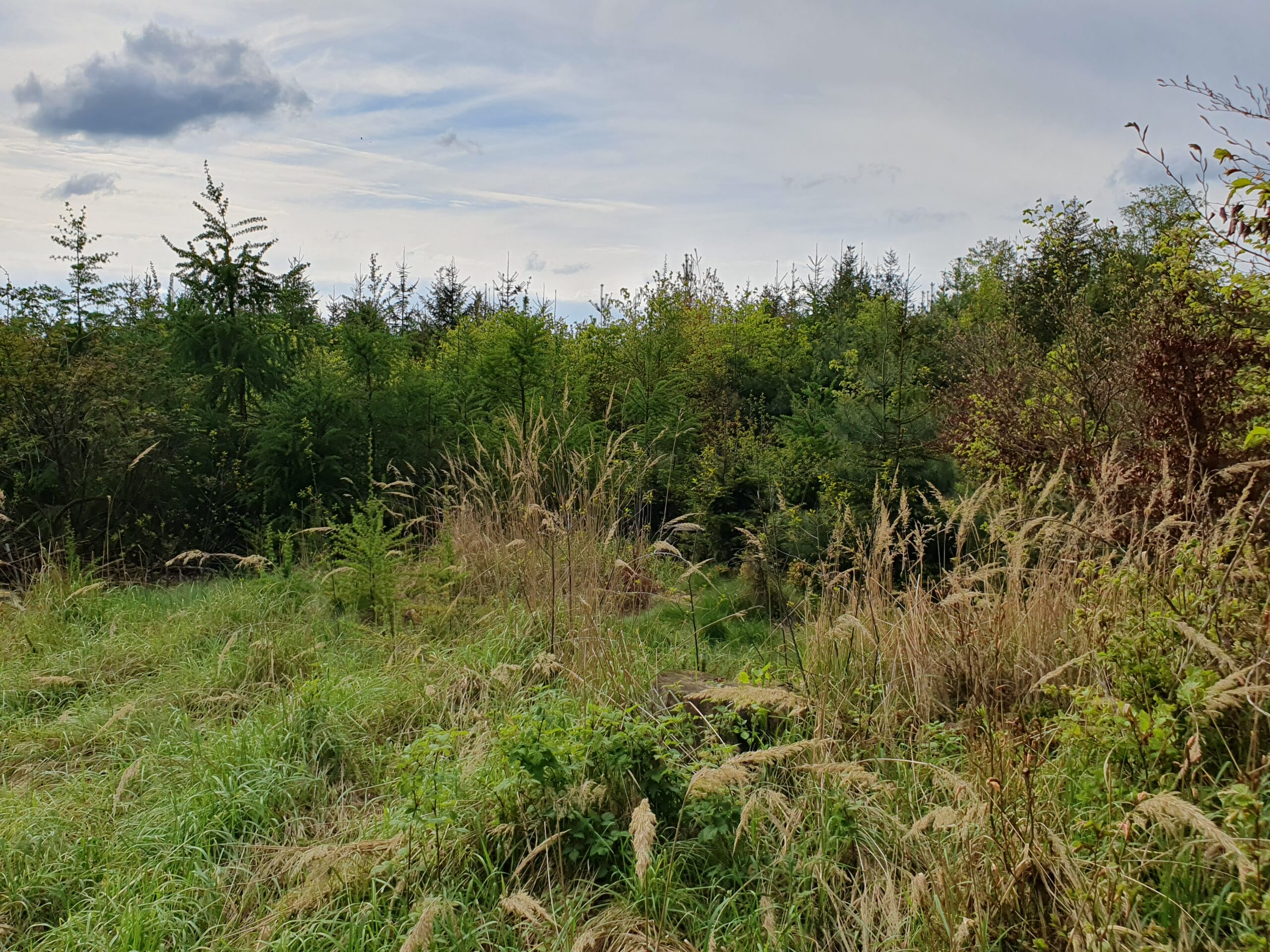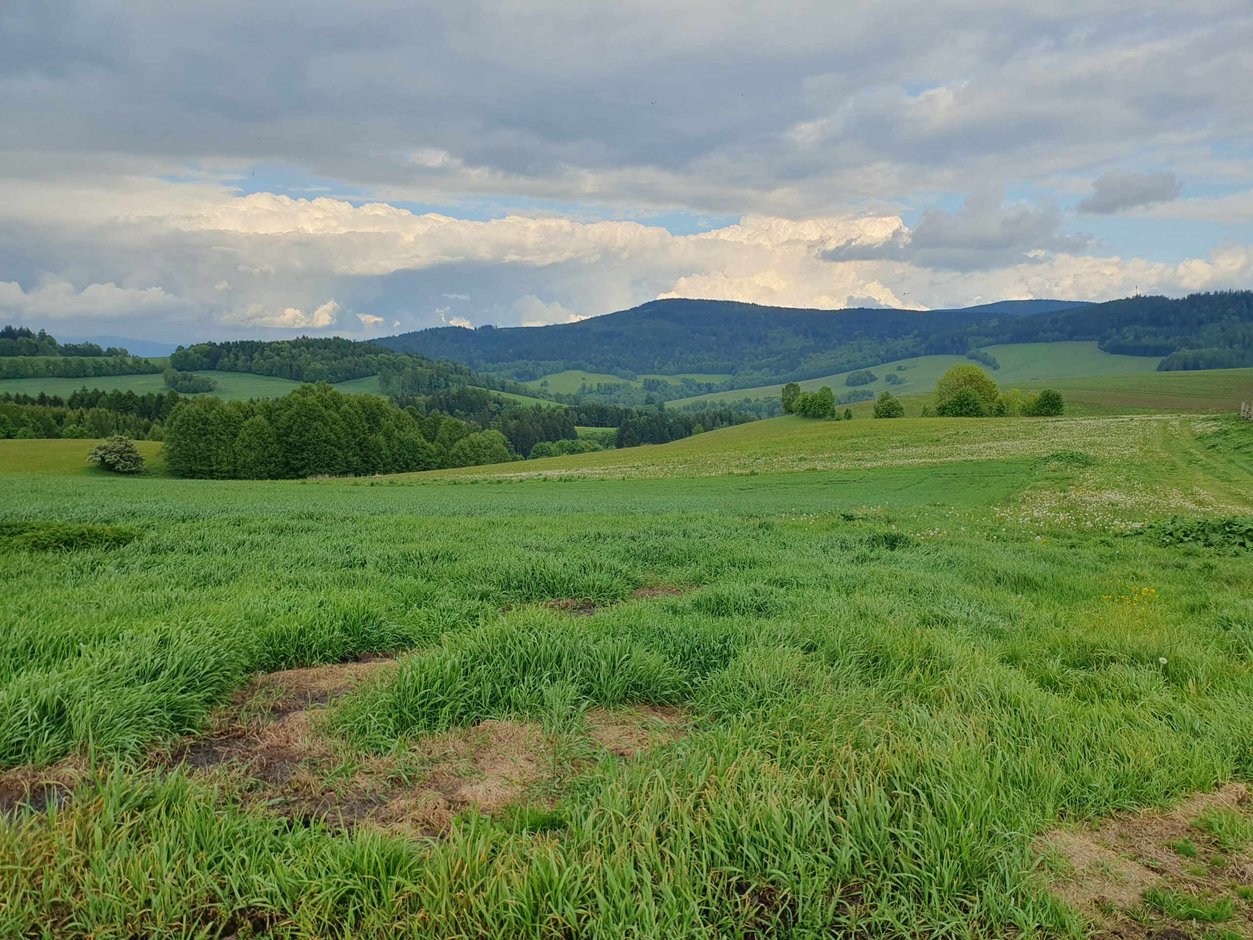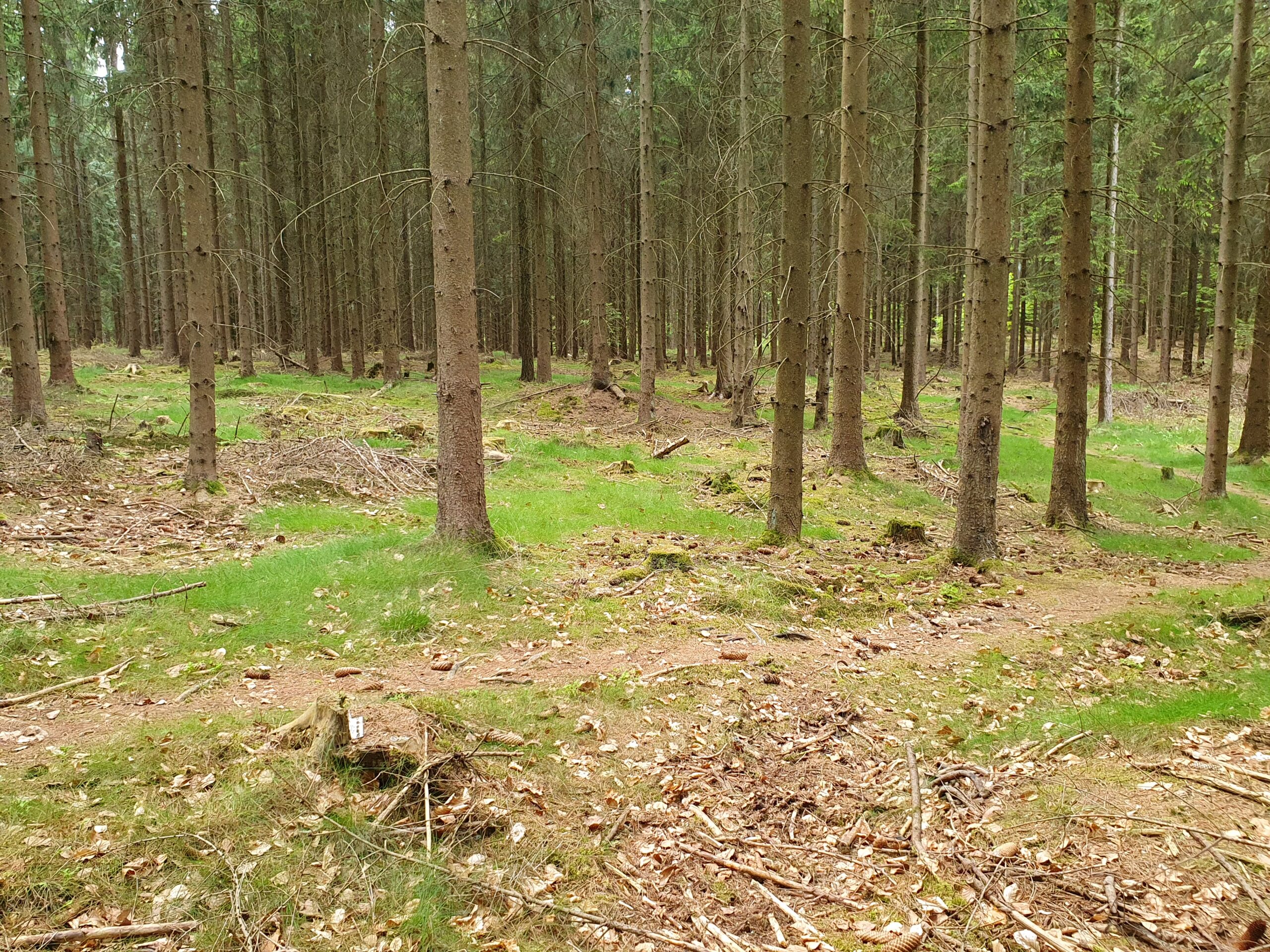 podhorský les, 560 – 720 m n. m., část svažitá, v SV části skály, středně hustá síť komunikací